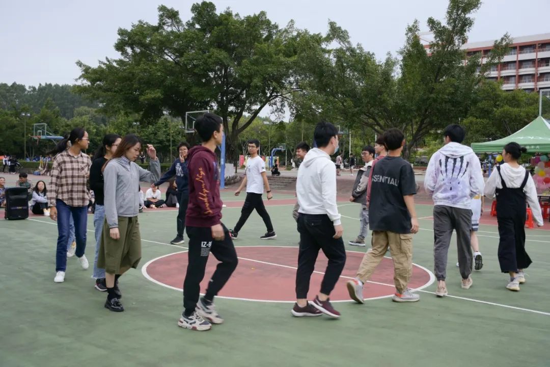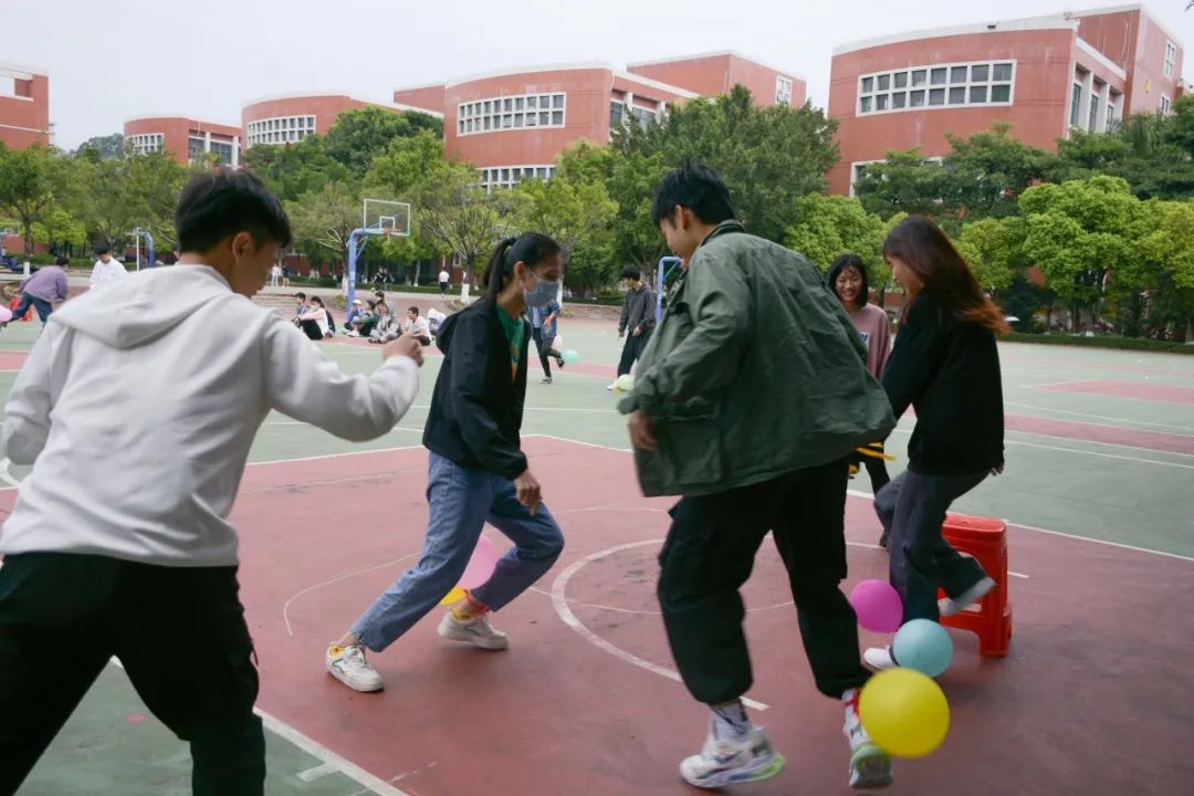 游戏三:踩气球。在工作人员准备下,全体活动成员分成两队参与踩气球游戏。双方队员团结一心,依靠自身的敏捷身法闪避对方的攻击,团结协力踩爆对方的气球。在欢声笑语中结束了今天的活动。