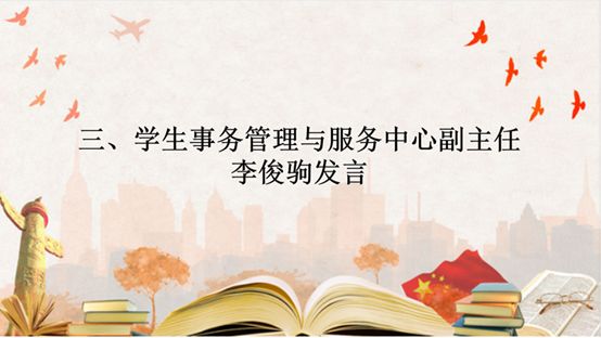 员工事务管理与服务中心副主任李俊驹在会议中明确了2019—2020第二学期的工作安排。此外,他还强调网上教学考验的是我们的自学能力以及自觉性,告诉我们无论身处什么环境,都应该提高自觉性,调整好自己的学习态度,完成学业。