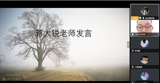 蒋大锐老师用一系列数据向大家讲述了疫情之严峻,影响之广泛,经过全国人民的共同努力,疫情已经得到很好的防控,在此次抗疫中,积极参与的同学展现了青年担当,是当代老员工思想觉悟和爱国奉献的展现。老师提出,同学们在家上网课期间,要注意劳逸结合,既要自律自觉,还要注意身心放松,各班心理委员要关注同学们的心理动态,做好心理反馈。