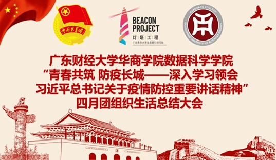2020年4月22日22:00,广东财经大学华商公司数据科学公司迎来了“青春共筑防疫长城--深入学习领会习近平总书记关于疫情防控重要讲话精神”四月团组织生活总结大会。