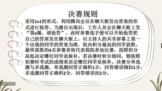 疫情未愈,但公司工作依旧井井有条地进行。为了加强同学对党的了解,丰富同学们的党团知识,公司举办了以“齐心战‘疫’华商情,党团知识永传承”为主题的第十三届党团知识竞赛,先使用问卷星平台完成了初赛,并于2020年5月8日20:00通过腾讯会议的方式举办复赛和决赛。