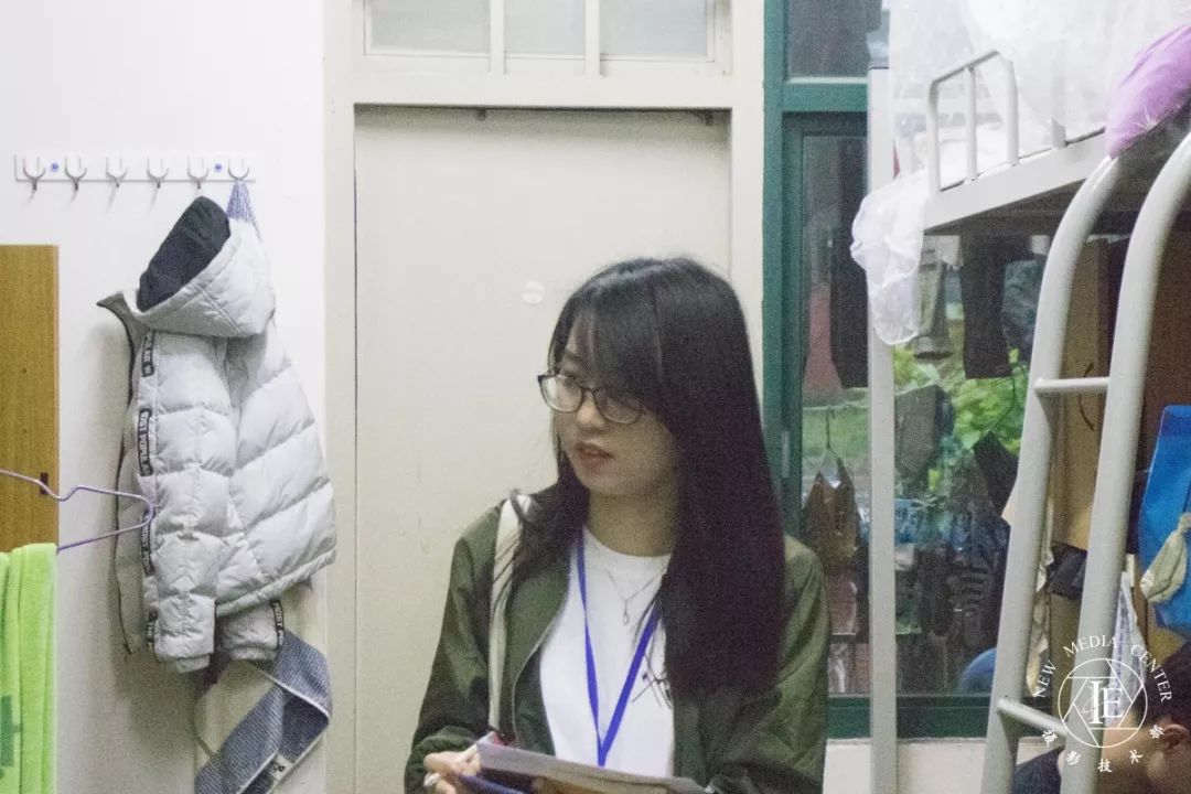 下午6时15分全体工作人员在天梯下集合完毕后,宿舍检查负责人按照分配好的人员逐个发放检查表并对他们进行工作说明,随后他们来到宿舍楼下宿舍并对宿舍管理员表明身份后便开始了宿舍检查。