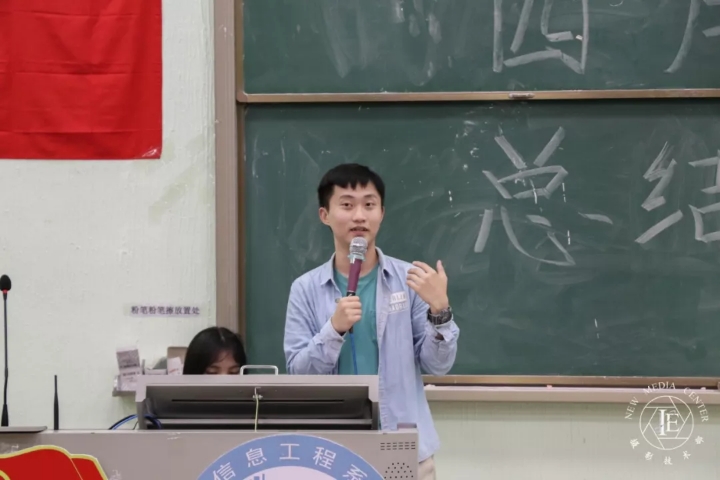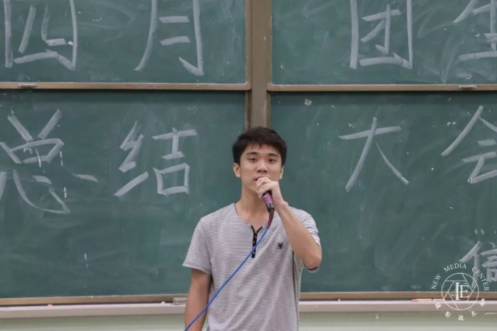接下来,是黄比悉师兄发言,他主要就这次会议的主题而展开阐述。他表示青春应该是有活力的、充满朝气与激情,作为老员工的我们都应该要合理地规划与充实四年的老员工活。接着,他还提及到奋斗。在他看来,奋斗的青春是最美丽的,对此他希望同学们都能够为自己的青春努力奋斗,不让自己的青春抱有遗憾。与此同时,他还谈到我们今天安定的生活与生活水平的日益提高,都离不开党的领导;他殷切期盼同学们能够铭记历史、努力当下、展望未来、建功于新时代。最后,他规劝同学们能够“不忘初心,方得始终”,让自己的青春因奋斗而更加美丽。