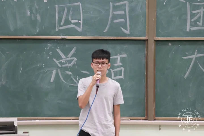 最后由梁铭烙同学为大家带来歌曲《国家》,他的歌声深情动人,歌词句句赞颂着我们的祖国。