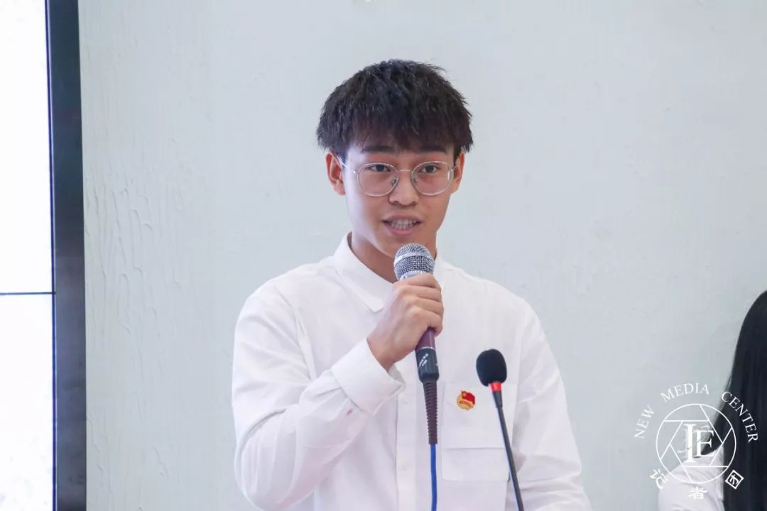 员工代表冯泽禹同学发言。他表示在过去一年里,在与老师同学交流,在参与组织的活动中,我们都在逐渐成熟成长。其次他希望同学们能走好每一步,脚踏实地。最后,他提出青年作为实现中国梦的中坚力量,要牢记初心,以更加饱满的热情和干劲,务实的作风迎接新的挑战。