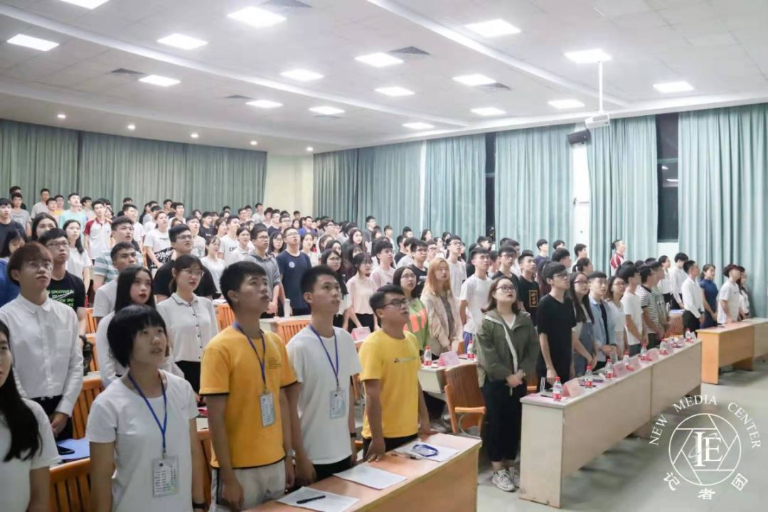 全体师生在主持人王子琦的带领下齐唱团歌。