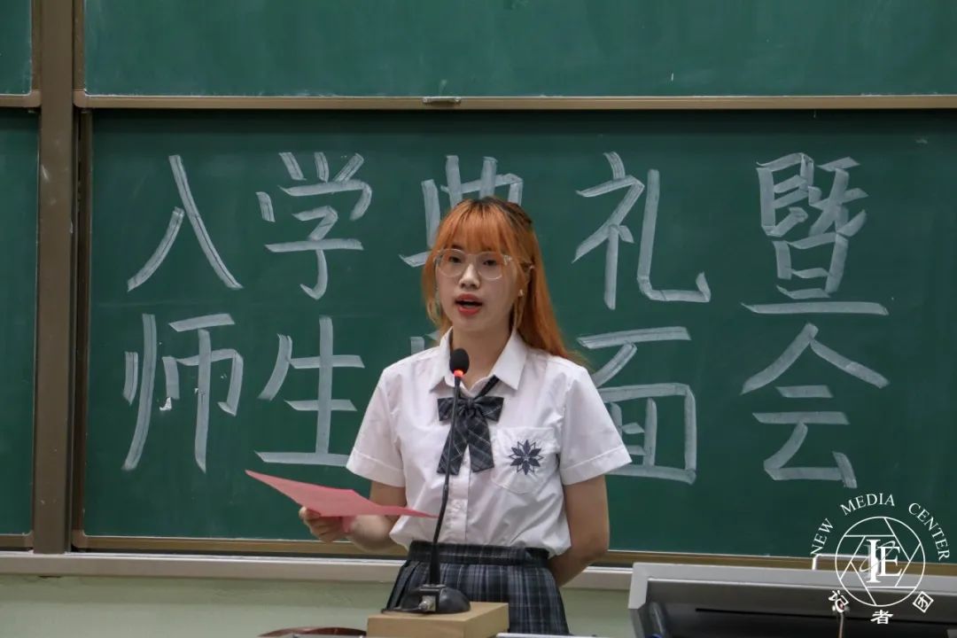 新生代表沈紫绮同学上台发言,她表示,大学是人生的一大转折点,是我们圆梦的地方。她承诺会秉承华商厚德,励志,博学,创新的校训,做到勤学好问,敢于创新,严格自律,不负老师父母的期望,开拓属于自己的美好人生。