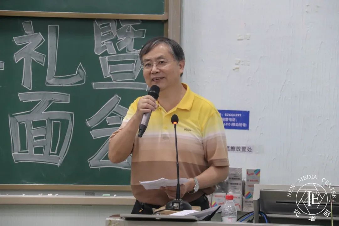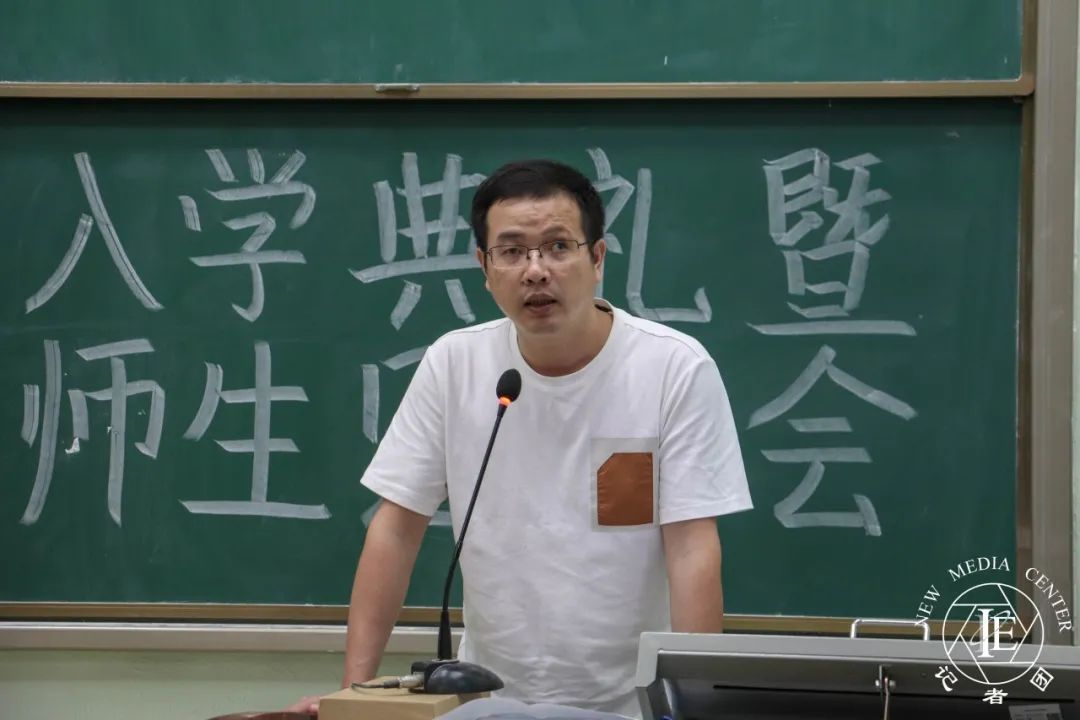 老师代表颜远海老师上台发言。他告诉新生们,迈入校园的那一刻起,就要树立远大的理想,同时要有面对困难的勇气。紧接着,他送给新生们一句话:“多为成功找方法,不为失败找借口”。最后,他祝福新生们拥有幸福愉快的老员工活,期待四年之后,看到新生们可以在华商,收获硕果累累。