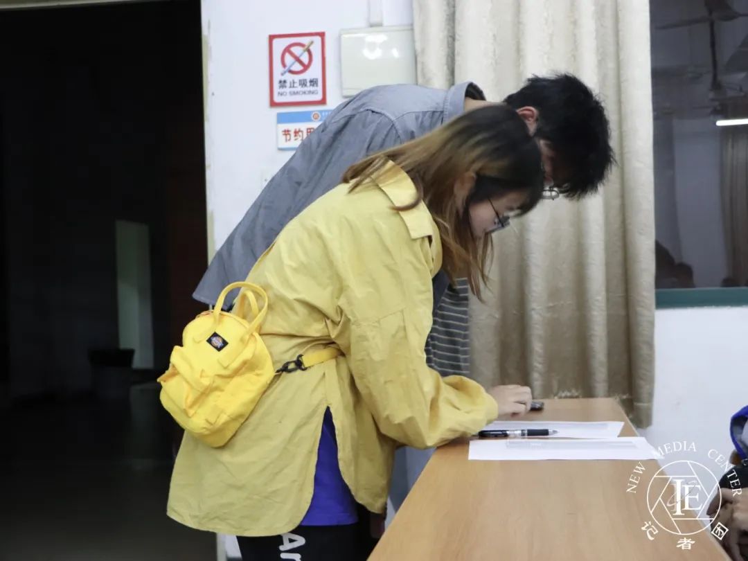 在电影开始之际,参与观看爱国电影的同学纷纷赶在影片开始前,进行入场、签到。已入场的同学在座位上相互轻声探讨,迫不及待地等待着这场电影的播放。后续进场的同学也很快就融入其中。