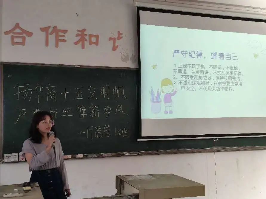 通过此次班会,同学们对规范自身,遵守纪律等基本准则有了更深层次的了解,班长同时也希望大家遵守准则,做一个文明守纪的华商学子。