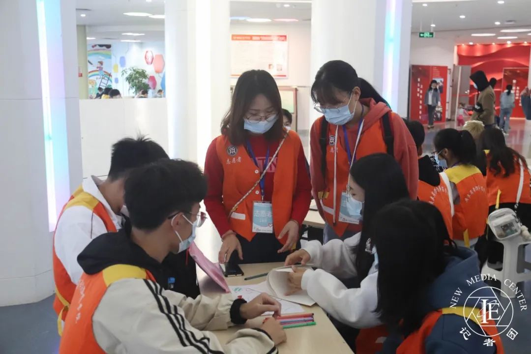 在志愿活动正式开始前,大家积极准备,穿着整齐统一的红色志愿者马甲,认真布置着活动场地。在活动场地里满怀期待地等待孩子们的到来
