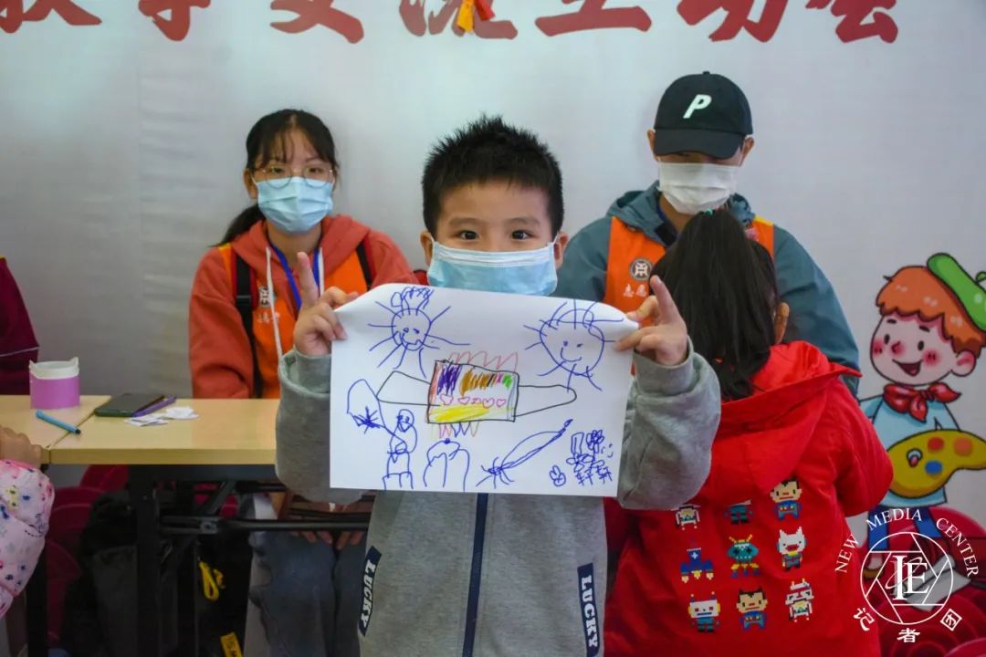 游戏四:画口罩。志愿者给小朋友一张纸,让小朋友在纸上画出自己心中的口罩,画完后即过。小朋友们在志愿者们的耐心指导下,充分发挥自己的想象力,画出自己心目中的口罩,这不但锻炼了小朋友们的想象力还加深了小朋友们对防疫工作的了解。