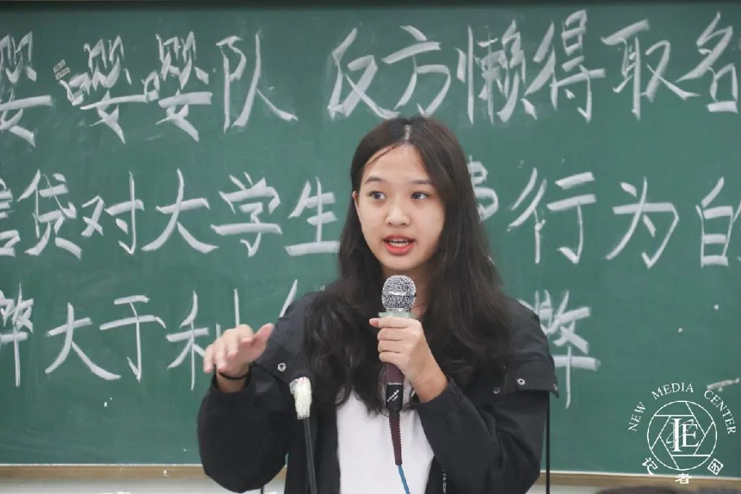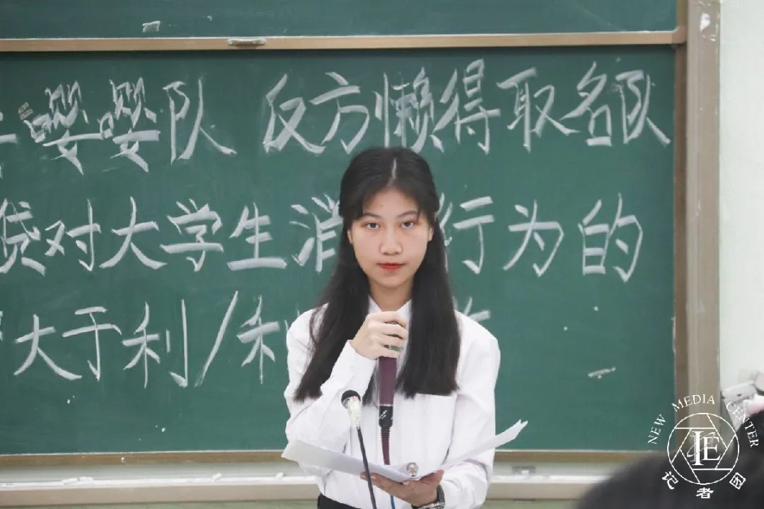 反方辩手则持相反观点,以蚂蚁花呗等小额信贷是否有利于老员工养成量入为出,合理消费的行为习惯为辩题标准进行论述。
