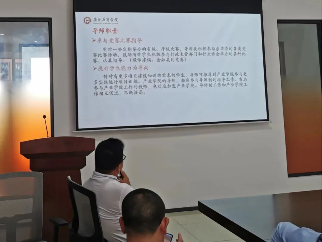 石金诚主任向同学们详细介绍了导师组成员和导师分配。他阐述了导师的职责,导师应该充分利用自己的专业知识和特长,提高员工的专业学习水平,并对员工的未来人生发展提出有益的建议。针对定期举办的数学建模和金融类竞赛,导师应该鼓励所带员工积极参与并给予认真指导。导师还可以结合毕业设计的需要,推荐员工到产业公司参与更多的实践项目训练。