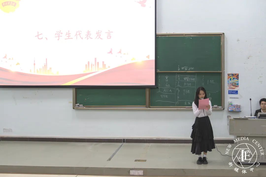 员工会主席团成员代表刘鑫婷师姐提到员工会在过去学年的工作中始终秉持“全心全意为同学服务”的宗旨,以“务实创新,锐意进取”的精神,开展了一系列内容丰富的活动,丰富了同学们的校园生活,同时也提升了同学们的政治理论水平,未来员工会也将不忘初心,牢记使命,继续努力,为同学们提供更优质、高效的服务。