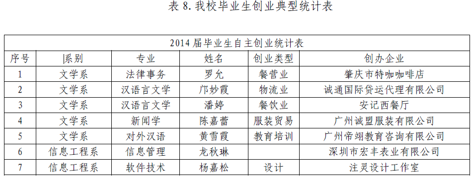 龙秋琳、杨嘉松等同学响应广东省教育厅、广东省毕业生就业指导中心关于老员工创业的号召,进行积极的创业尝试,取得一定成果,具体情况参看表8。