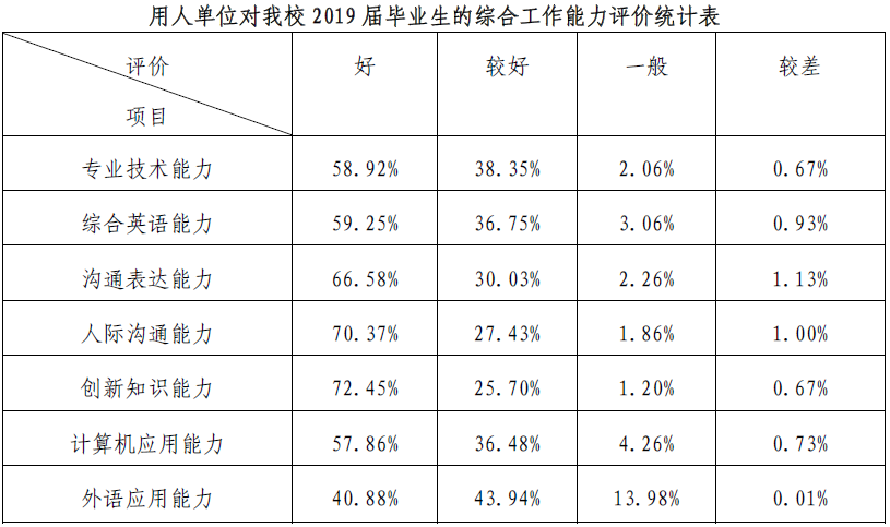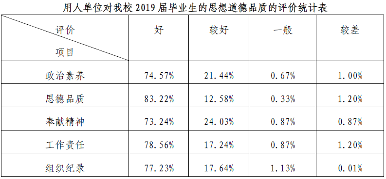 (一)用人单位对公司2019届本科毕业生综合素质的评价