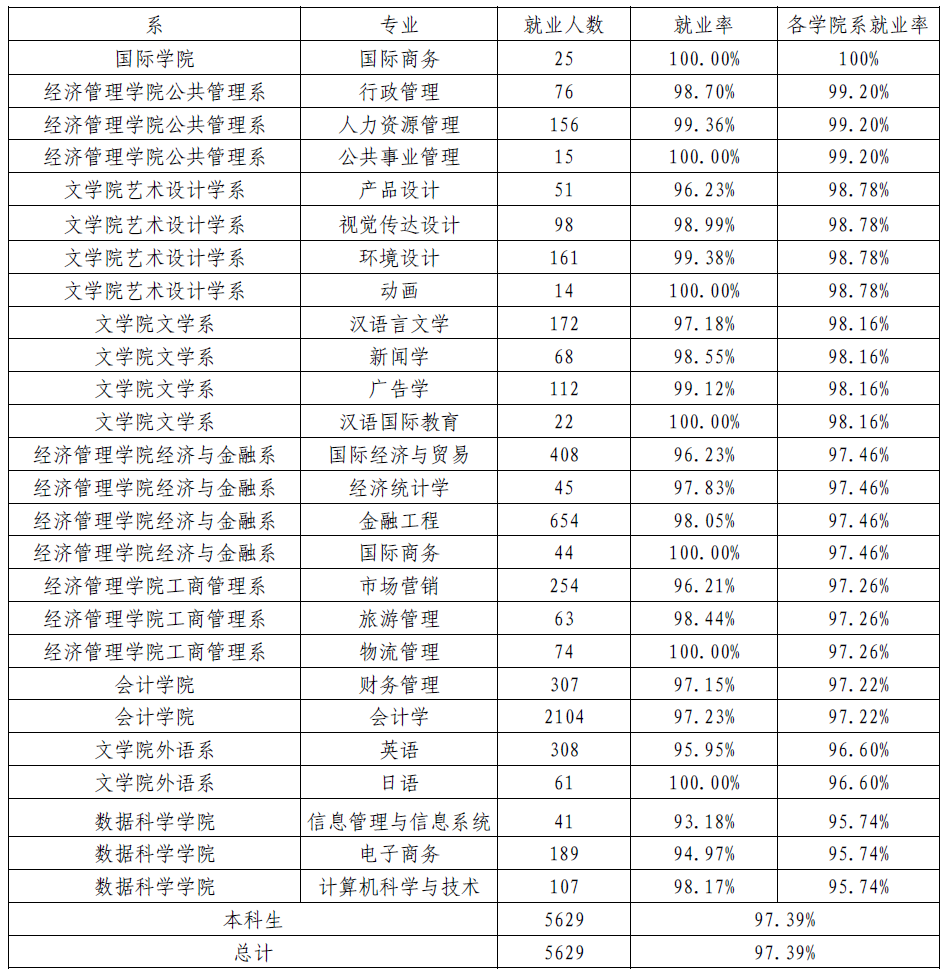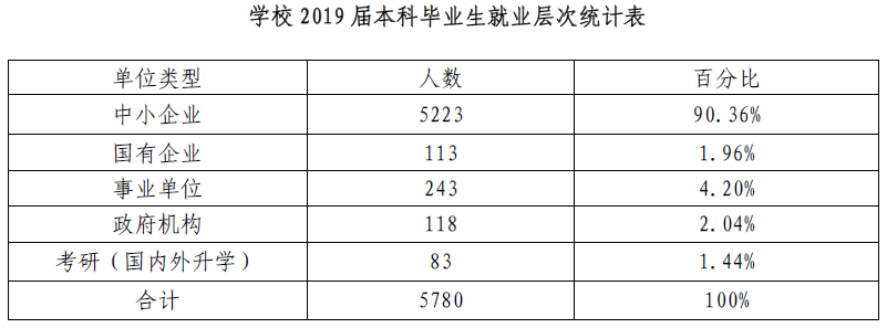 根据广东省教育厅《关于印发2019年广东省普通高等公司毕业生初次就业率统计表的通知》文件,广东财经大学华商公司2019届毕业生初次就业率达97.39%,高出全省普通高等公司毕业生初次就业率2.81%(其中高出全省本科院校平均就业率3.95%)。公司初次就业率在全省独立公司中排名第一位,在全省本科独立公司和民办院校排名第三位。