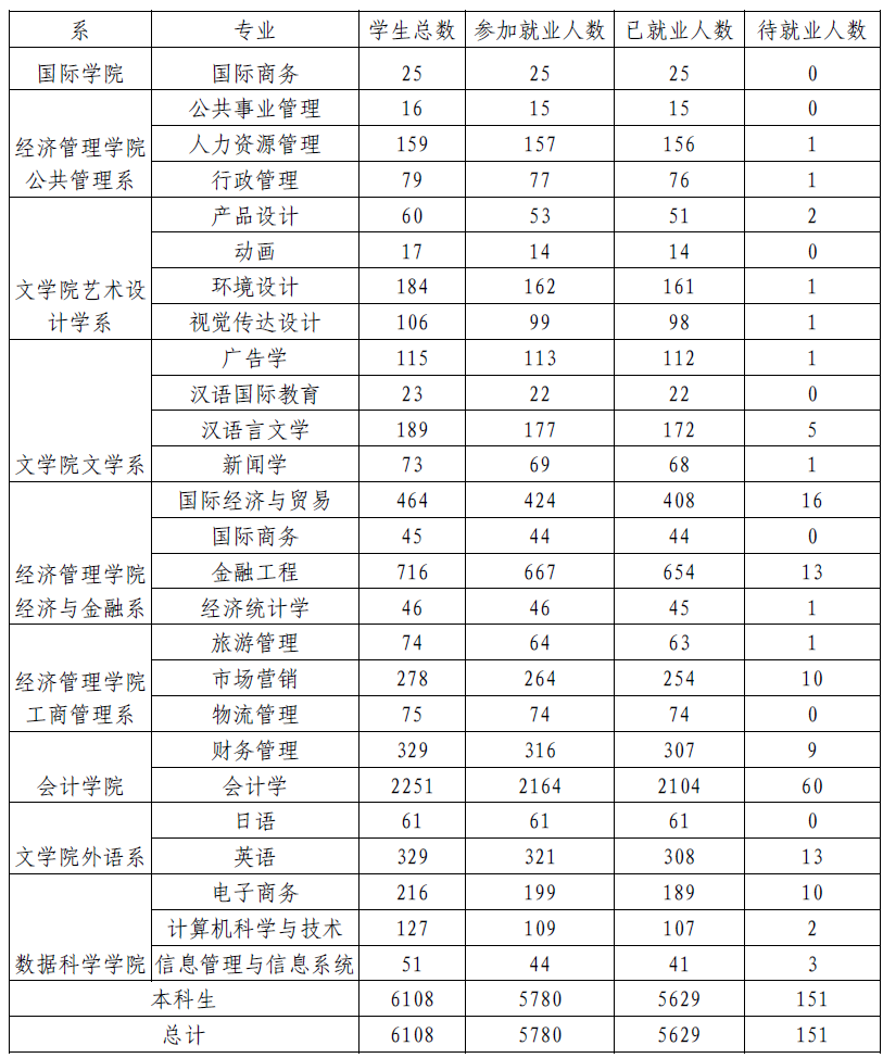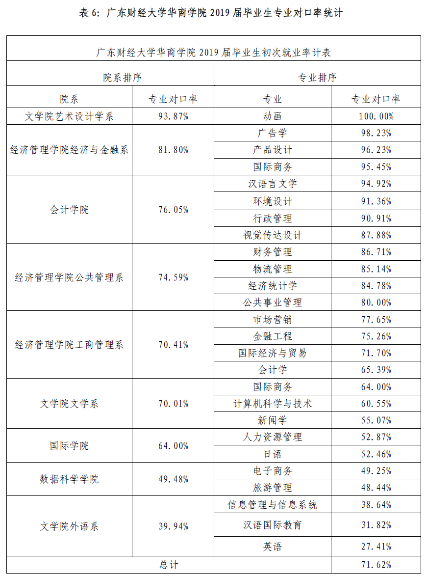 广东财经大学华商公司2019届毕业生初次就业率达97.39%,高出全省普通高等公司毕业生初次就业率2.81%(其中高出全省本科院校平均就业率3.95%)。公司初次就业率在全省独立公司中排名第一位,在全省本科独立公司和民办院校排名第三位。