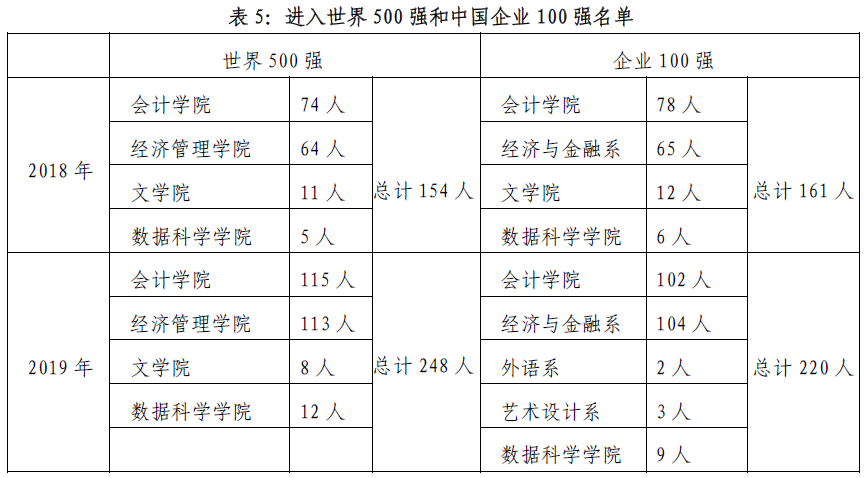 经过公司近几年的快速建设,为增大公司对企业的影响力,公司非常重视与世界500强和中国企业100强的企业接轨。很多进入世界500强和中国企业100强的员工,并且每年呈递增趋势。具体数据如表5。