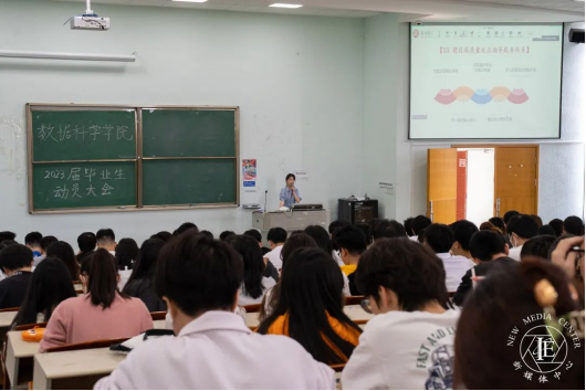 二十大报告提出,强化就业优先政策,健全就业促进机制,促进高质量充分就业,为更好地贯彻党的二十大精神,尽早尽快落实公司就业工作部署,应对今年更加严峻复杂的就业形势,进一步增强员工就业的主动性和积极性,提高员工就业能力和就业质量,数据科学公司于2023年3月10日召开了2023届全体毕业生就业动员大会。数据科学公司领导班子成员、就业指导中心老师、毕业班辅导员代表等参加此次会议。