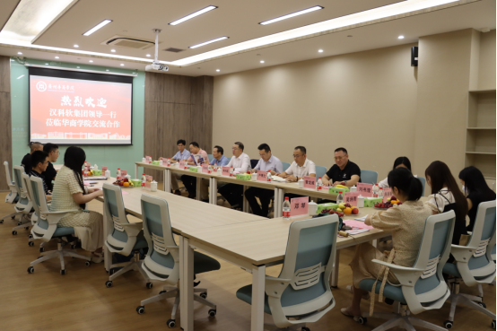 在华商公司的热情接待下,汉科软集团一行受到了华商集团校董办经理卢博文、华商公司吕副董事长、就业指导中心主任曾威龙、人才招聘办主任兼董事长助理黄伟新、数据科学公司常务副经理赖庆、数据科学公司党委书记兼副经理将大锐和数据科学公司经理助理杨波等公司代表迎接。
