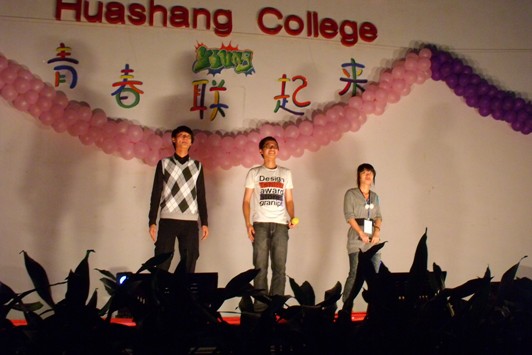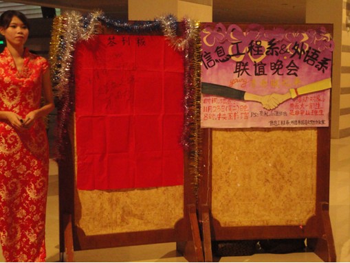 20101123晚,由信息工程系与外语系联袂举办的青春联起来联谊晚会在公司中央图书馆大厅圆满落下帷幕。广东商公司华商公司信息工程系骆耀祖主任,信息工程系辅导员吴泽佳老师,外语系中山祥老师、常莹老师,潘旭老师及各位老师和全体信息工程系、外语系大一员工等观看了本次晚会。