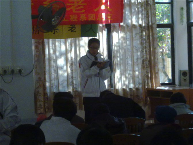 2010年4月24号8:00,信息工程系员工党支部各党员、预备党员以及入党积极分子乘车前往增城市增江敬老院慰问在院60位孤寡老人。