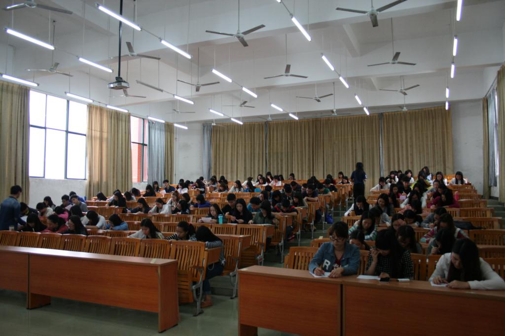 考前每位同学按照竞赛要求找到自己的座位并安静的等待考试指令。考试初始,同学们很快进入作战状态,试室一片安静。考试期间各位同学都在积极努力地答题。考试进行三十分钟后可自行交卷,大部分同学都自信地选择提前交卷,也有少部分同学仍在冥思苦想,与时间奋战。