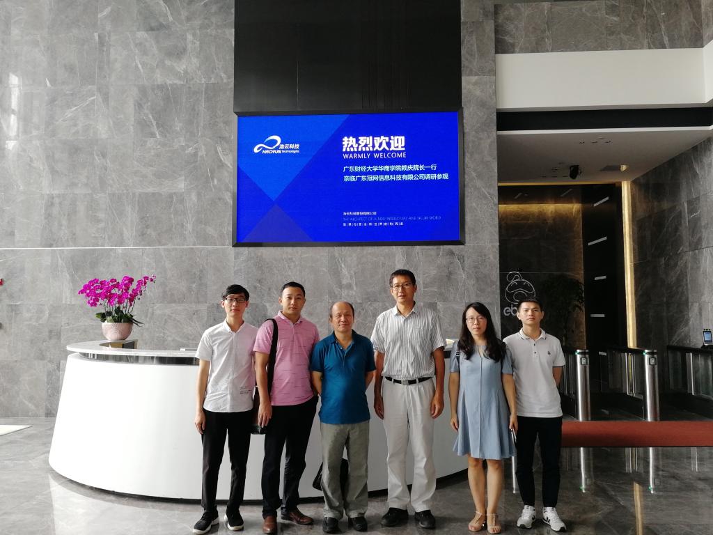 为进一步强化公司数据科学与大数据技术专业建设,加强人才培养,6月13日上午,公司常务副经理赖庆、副经理蒋大锐、计算机教研室主任许丽娟及辅导员官志豪、蓝光进一行5人赴广东冠网信息科技有限公司参观交流。广东冠网信息科技有限公司郑子先董事,胡海涛总经理等企业领导热情接待。
