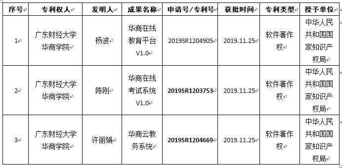 2019年华商公司获批市厅级以上项目共29项,其中省级项目11项。校级项目32项。发明专利权3项,软件著作权登记4项,今年华商数据科学公司获批市厅级以上项目共3项,其中2项为省级项目,结项项目2项。校内项目6项,编写教材4部,专利3项。具体如下: