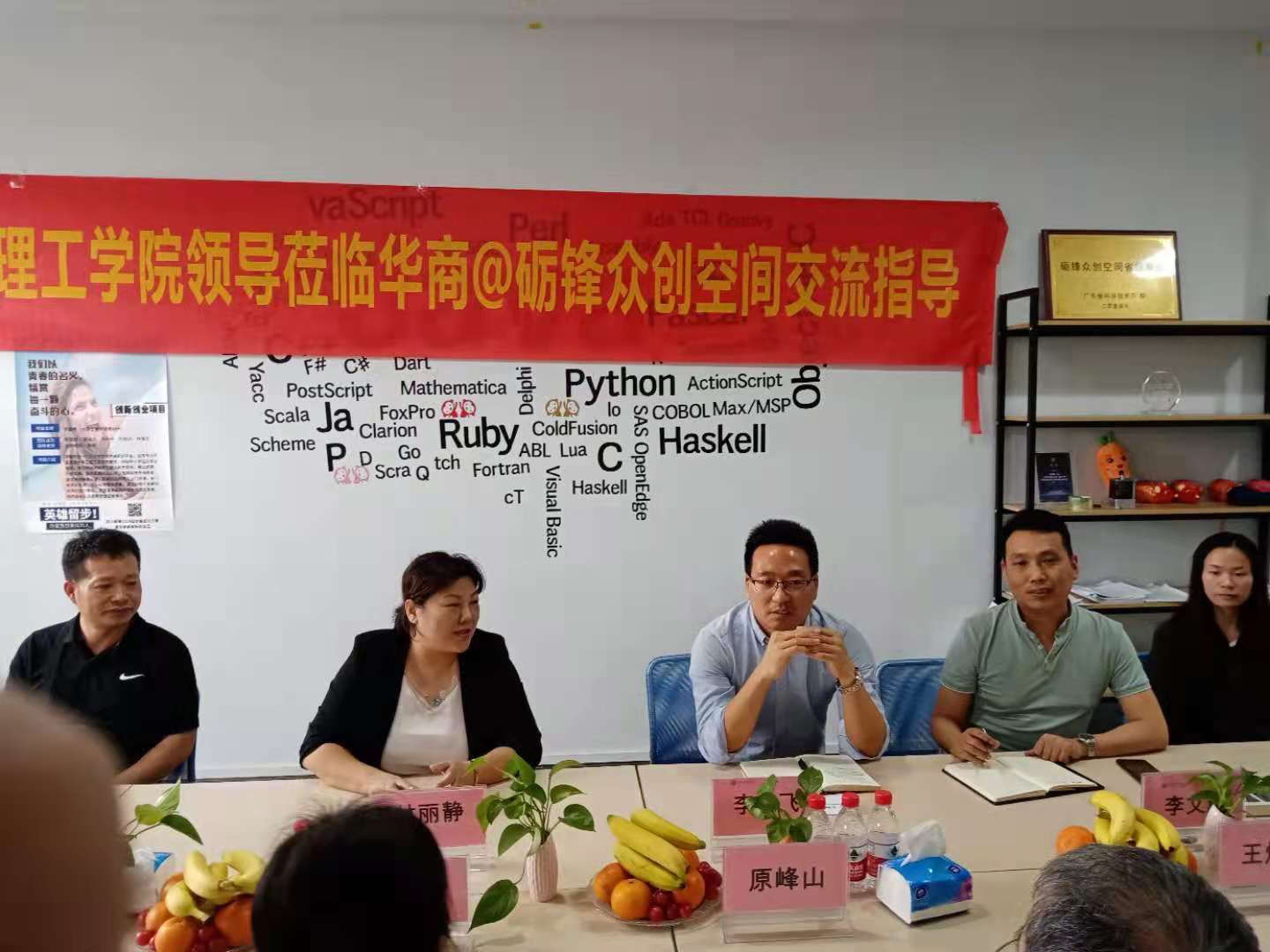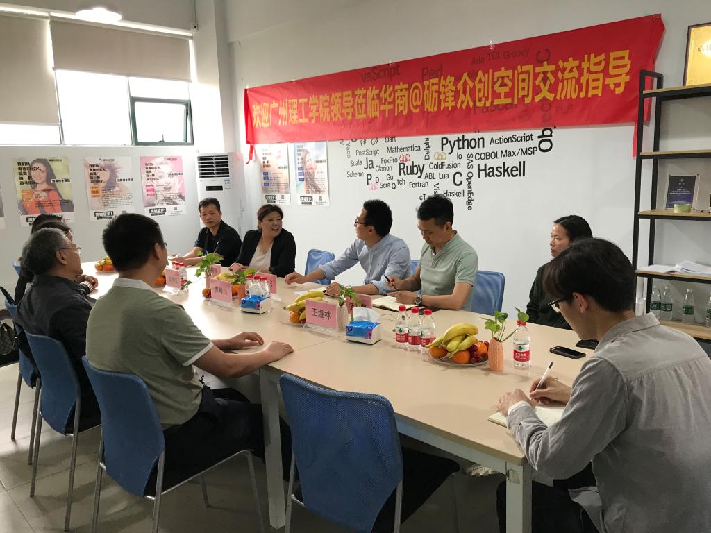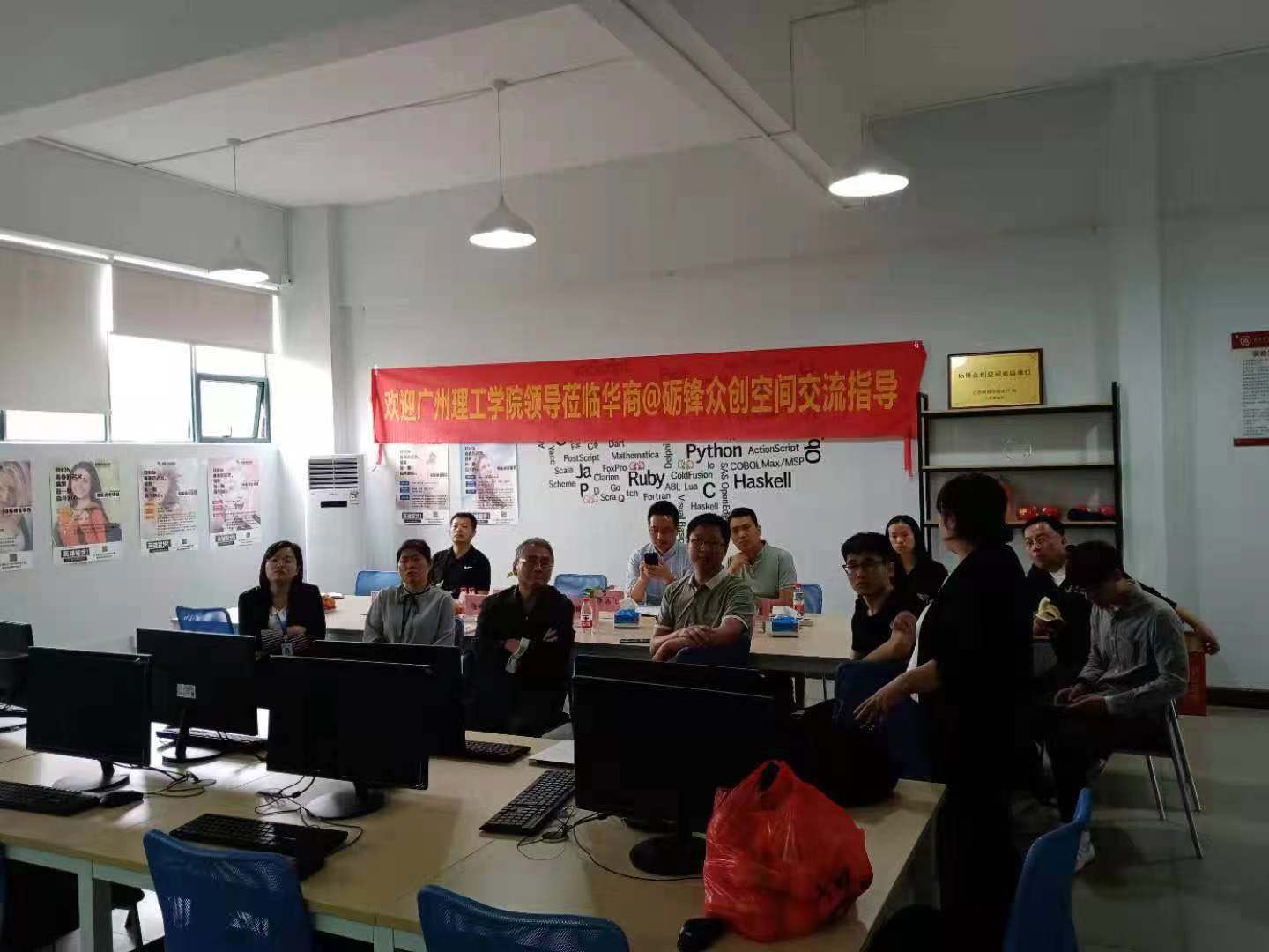 昨日,广州理工公司计算机科学与工程公司领导原峰山经理、王煜林副经理、张艳红主任、陈星莹主任一行,在华商数据科学公司--李远飞副经理、创新创业项目负责人李文彪老师、肖绍洪主任、陈刚主任、等领导的陪同下,参观我们砺锋科技驻华商的众创空间,对于员工创新创业教育专项调研,了解众创空间建设和运营的进展情况。