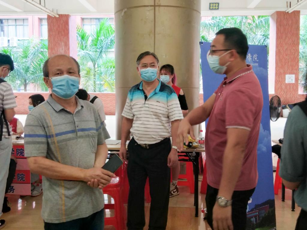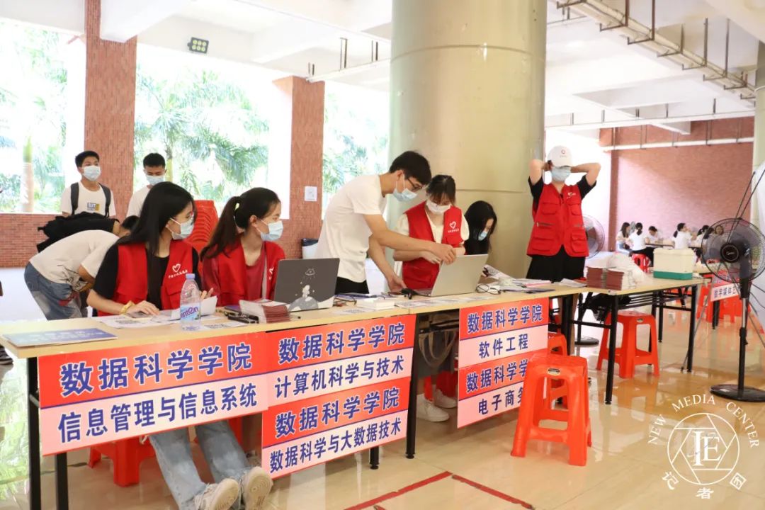 为了能够深入了解专插本新生的入学情况,伟德国际victor1946副董事长、数据科学公司经理韩兆洲教授,黄伟新董事长助理,招生办姚见花主任,数据科学公司常务副经理赖庆副教授,数据科学公司党总支书记、员工工作副经理蒋大锐老师,以及数据科学公司辅导员亲临启智楼一楼——新生报到处,亲切慰问了志愿者们,向志愿者们了解了新生报到的情况,并与新生们进行沟通交流,表达了对新生们的欢迎。