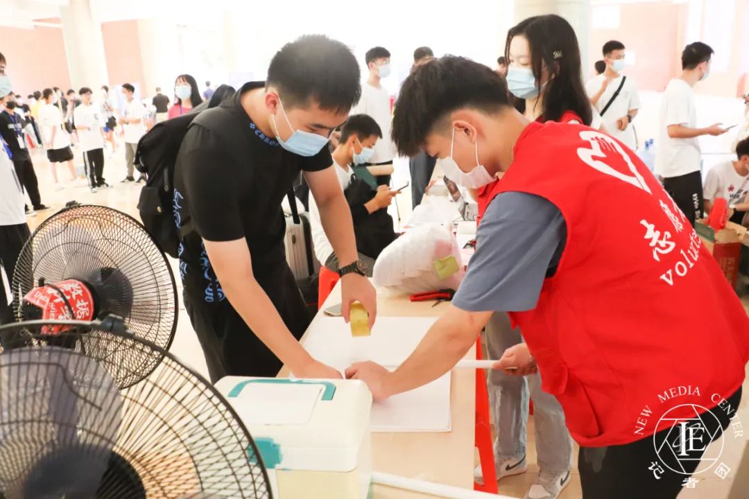 为确保新生报到能够安全、平稳、顺利、高效地进行,志愿者们在清晨时便履职到岗,开始了迎新准备工作。