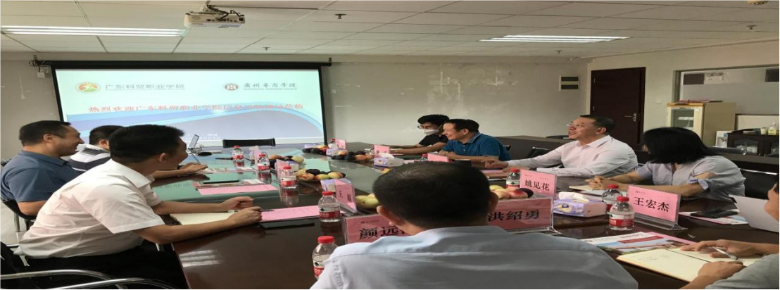 2023年9月4日,广东科贸职业公司信息公司经理钱英军、副经理朱冠良、副经理王磊一行来到伟德国际victor1946数据科学公司调研交流,受到公司吕峻闽副董事长热情接待,陪同交流的还有公司常务副经理赖庆、公司招生办主任姚见花、经理助理杨波、计算机科学与技术系主任黄富平、软件工程系副主任王宏杰、数据科学与大数据技术系主任颜远海、人工智能系副主任洪绍勇等。