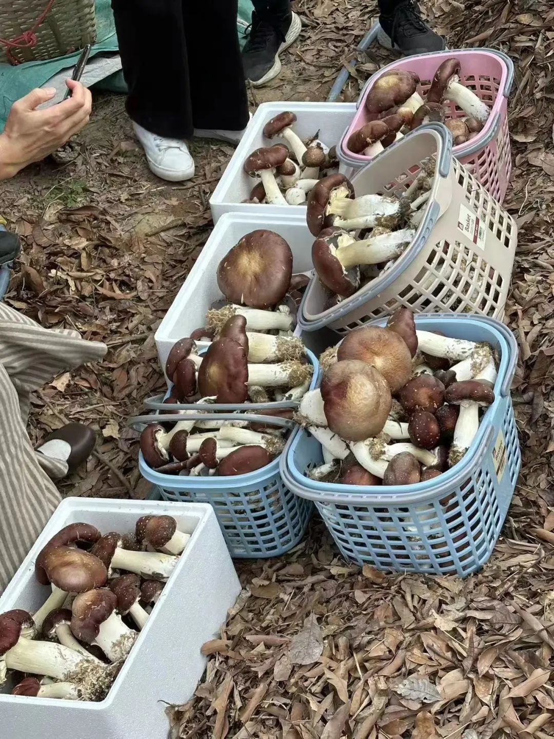 一个个胖嘟嘟的红棕色“小伞”被师生们温柔摘起,半个小时过去了,有人找到了“超大伞”一家,也有人找到了小巧却高挑的“小美伞”,逐渐地,每个组的泡沫箱装满了可爱的“小伞”,而这丰收喜悦的一幕也被增城区融媒体记录了下来。