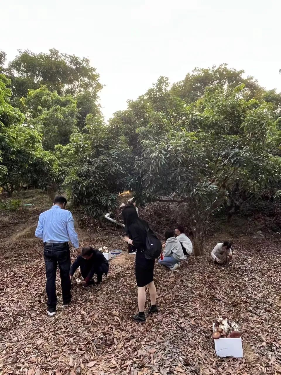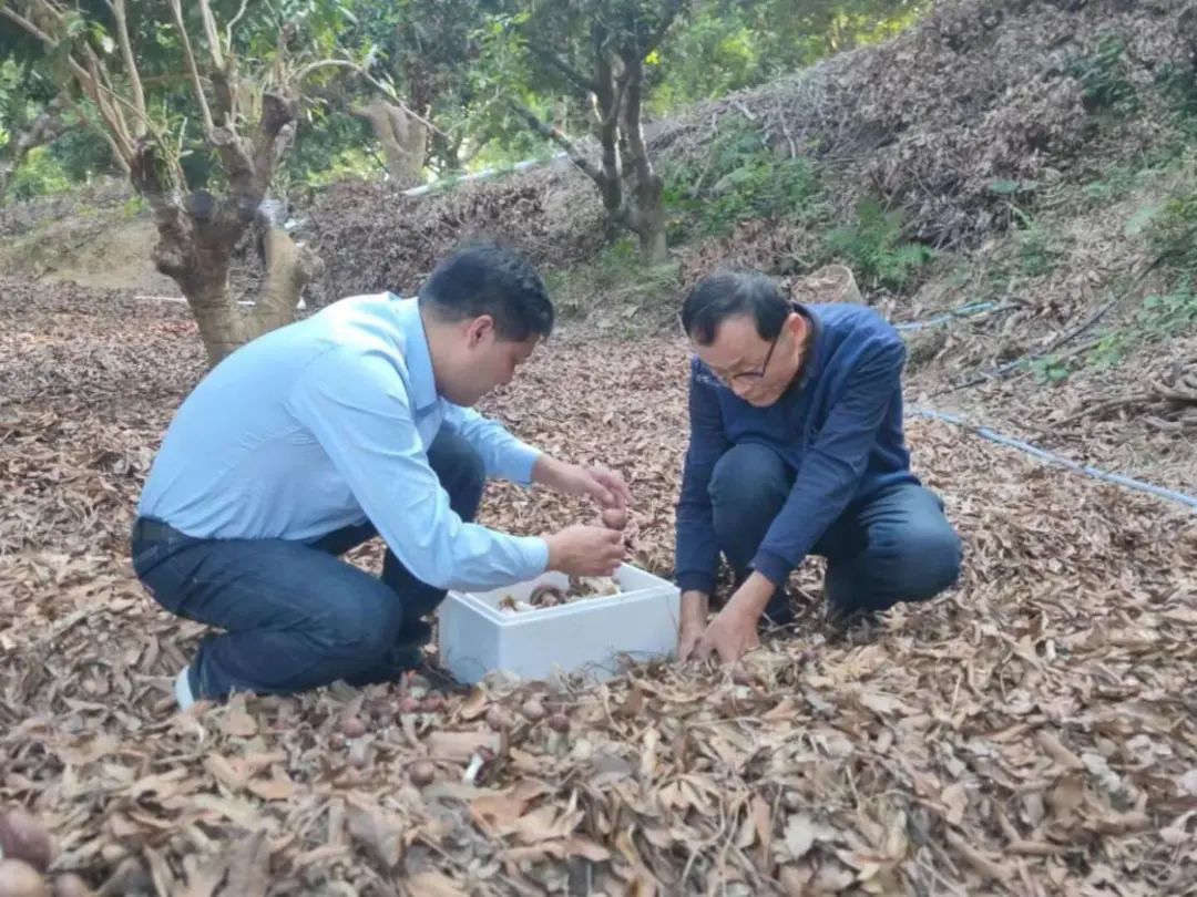 现场李向林教授在荔枝松茸基地讲解如何选品及如何正确采摘