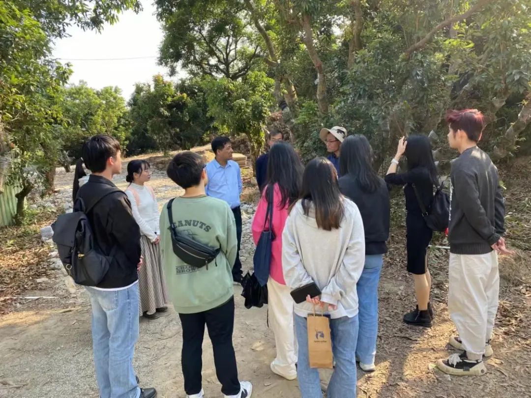 为了“深化产教融合,助力乡村振兴”,2024年1月7日,伟德国际victor1946数据科学公司电子商务系专业负责人孟晓明教授、电子商务系主任李加军老师、姚仙丽老师带领9名员工一同前往广州增城区荔城街庆丰村马屋村的荔枝果园开展直播合作基地考察。