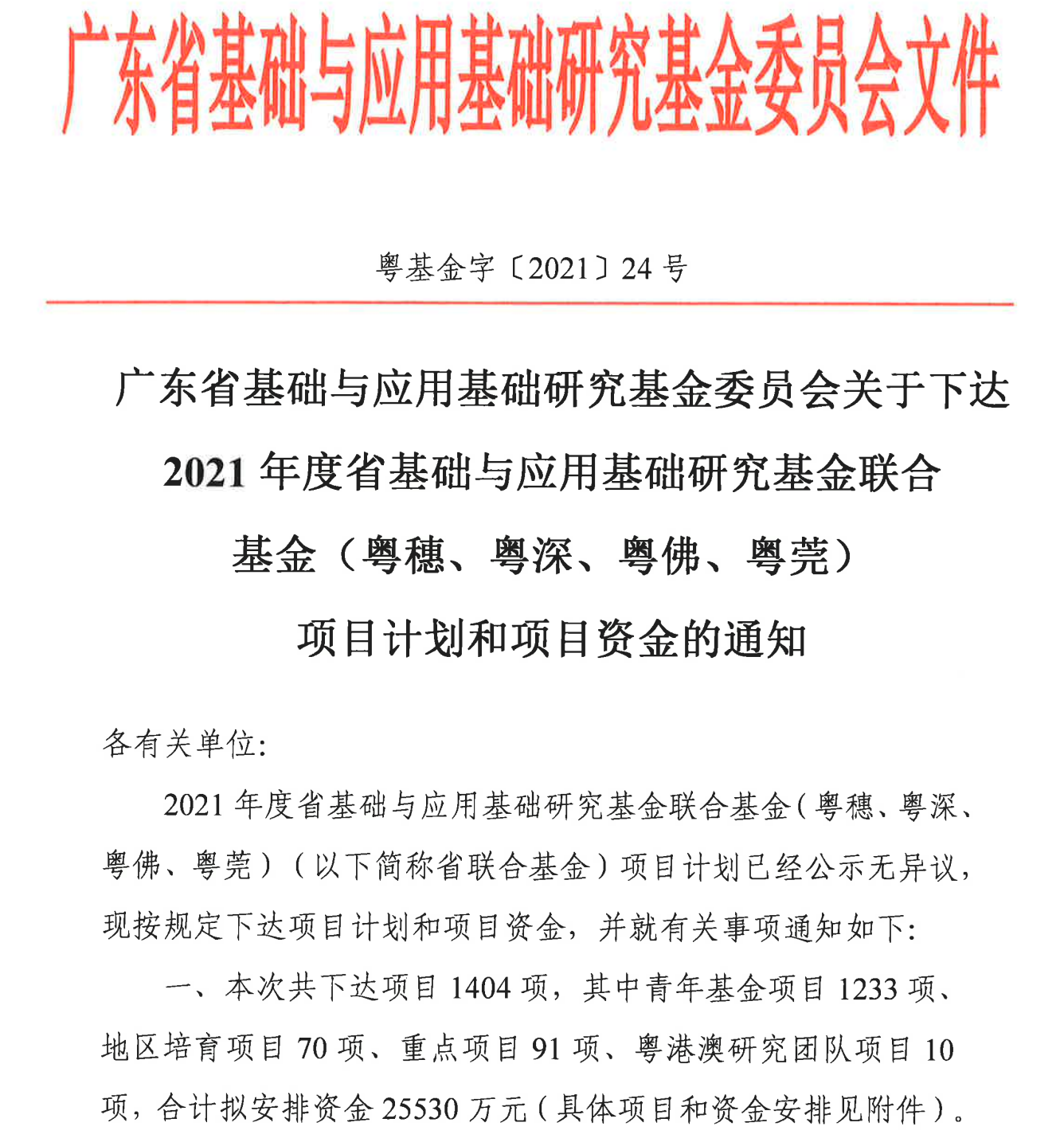 根据《广东省省级财政专项资金管理办法(试行)》《广东省基础与应用基础研究基金联合基金工作指引(试行)》等有关规定,经形式审查、通讯评审、会议评审(重点项目、粤港澳研究团队项目)等程序,2021年度广东省基础与应用基础研究基金省市联合基金共拟资助项目1404项(青年基金项目1233项,地区培育项目70项,重点项目91项,粤港澳研究团队项目10项)。伟德国际victor1946数据科学公司侯春娟副教授喜获此次省联合基金青年基金项目立项。此次立项,是李远飞科研团队的阶段性成果,也是历年来公司在省自然科学基金、省联合基金申报立项上新的突破!
