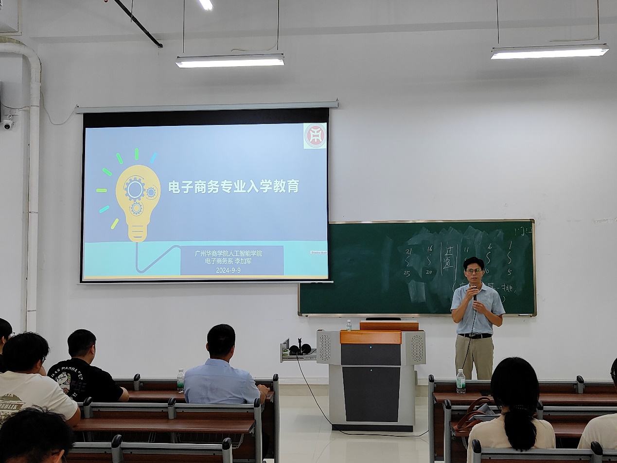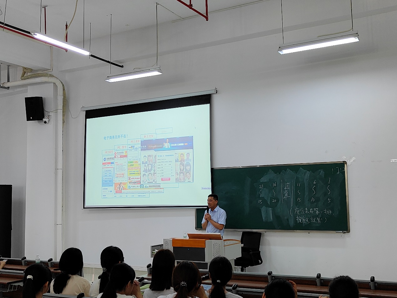电子商务系主任李加军副教授首先介绍了电子商务专业的发展现状,随后,阐述了电子商务专业的培养目标,该专业旨在培养具备电子商务系统设计与开发、电子商务运营、互联网创新创业能力的人才。针对新生关心的“学什么”和“将来能干什么”的问题,李老师详细介绍了电子商务专业的课程设置,包括通识课程、学科基础课程、专业课程和综合实践课程,并列举了数据分析、网站设计开发、跨境电商等多个就业方向,为员工未来发展指明方向。李老师还强调了实践的重要性,鼓励新生积极参与学科竞赛、创新创业实践等,并通过考取专业证书提升自身竞争力。此外,李老师还介绍了公司丰富的资源,包括优秀的团队队伍、校内外实训基地等,为员工提供良好的学习和实践平台。最后,李老师为新生提出了学习建议,希望同学们能够好好学习专业知识,积极参与实践,多思考,不断提升自身综合素质,为未来职业发展打下坚实基础。