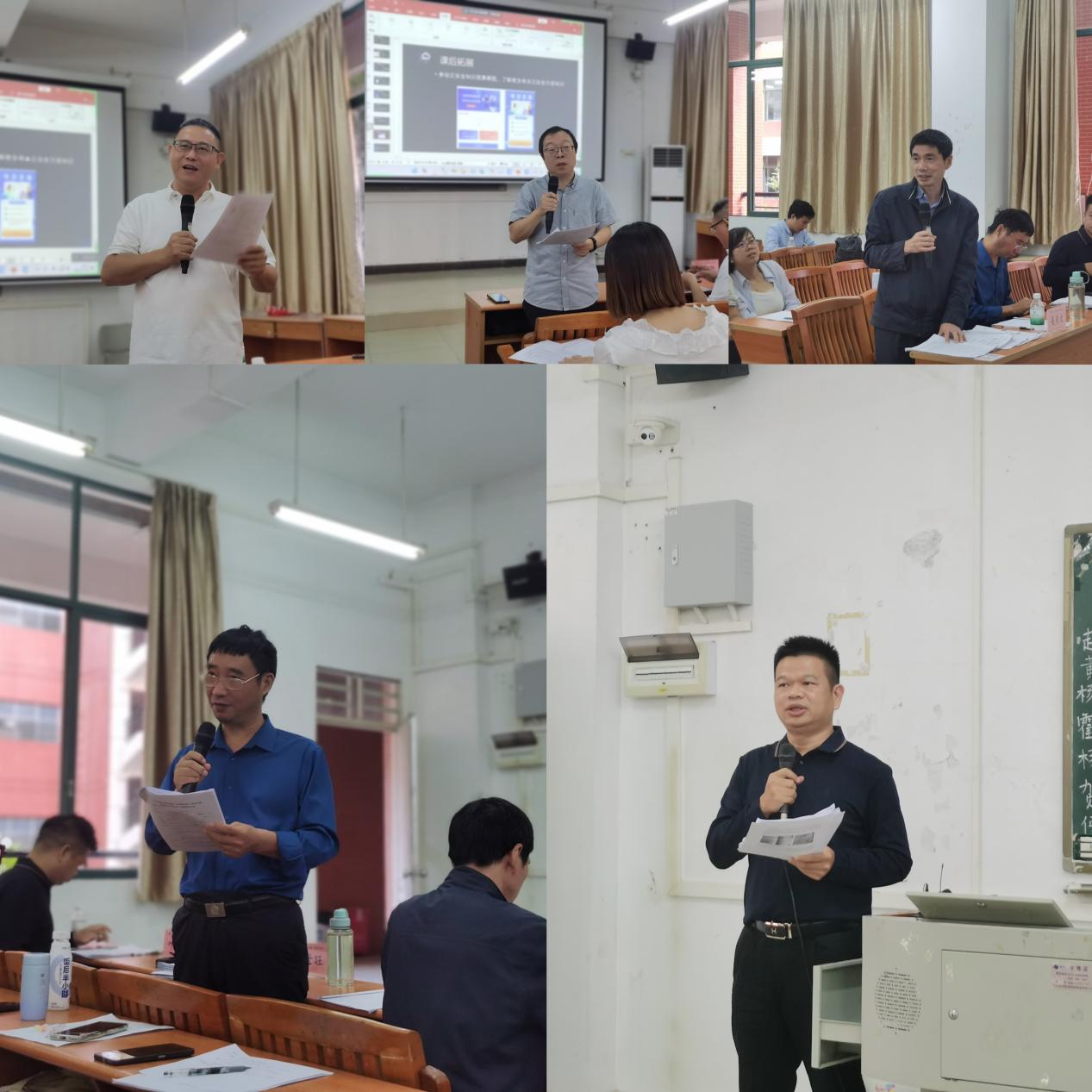 本次比赛分为教学设计创新汇报和课堂教学展示两个环节,参赛教师结合教学大纲、教学实践和《教学设计创新汇报评分表》,进行不超过10分钟的教学设计创新现场汇报和10分钟的课堂教学展示。来自金融数学、软件工程、数据科学与大数据技术、计算机科学与技术和信息管理与信息系统五个专业的七位教师(赵荣凯、黄梦莹、杨慧、霍永良、杨莉云、贺艳春、何璐琪)参加了比赛,并接受评委的提问和点评。