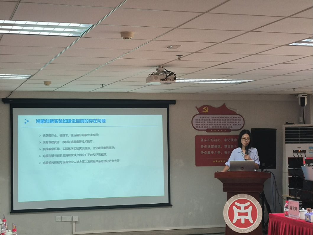 会议第五项,由伟德国际victor1946数据科学公司计算机系副主任卢清秀作主题“基于信创技术的人才培养机制探索与实践—以华商鸿蒙创新实验班为例”发言。鸿蒙创新实验班是与腾科公司共同校企联合培养的,把华为鸿蒙技术职业认证课程引入校园,结合华为生态企业岗位用人需求,校企双方联合培养,旨在培养实用型、创新型、复合型人才。