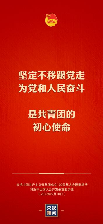 100年前,我们党亲手缔造了共青团,由此揭开党的青年运动新篇章,也开启了共青团紧跟党为实现民族复兴不懈奋斗的青春征程。100年后的今天,在党的领导下,共青团已经发展成为拥有300多万个基层组织、7000多万名团员、200多万名工作骨干的群团组织,成为引领中国青年听党话、跟党走,推动中国青年运动蓬勃向前的中坚力量。每一代青年都要在自己所处的时代条件下,尽最大努力谋划人生、实现使命、创造历史。