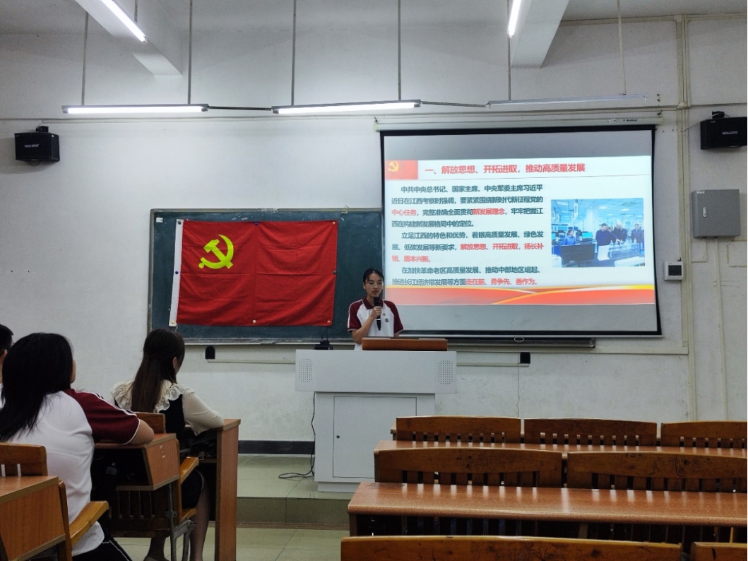 由丘润梅同志带领全体参会人员学习“凝心铸魂勇担当,实干笃行建新功”专题内容,习近平总书记近日在江西考察时强调,要紧紧围绕新时代新征程中国共产党的中心任务,完整准确全面贯彻新发展理念,牢牢把握江西在构建新发展格局中的定位。立足江西的特色和优势,着眼高质量发展、绿色发展、低碳发展等新要求,解放思想、开拓进取,扬长补短、固本兴新。在加快革命老区高质量发展、推动中部地区崛起、推进长江经济带发展等方面走在前、勇争先、善作为。