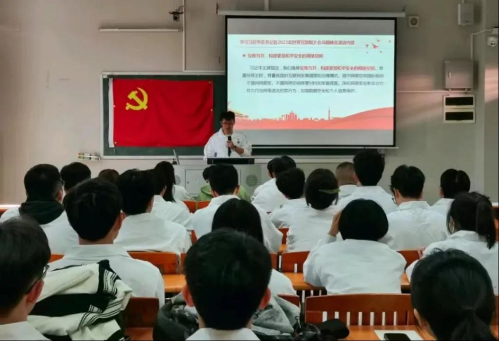谢嘉希书记表示我们要深化交流、务实合作,共同推动构建网络空间命运共同体迈向新阶段,互联网日益成为推动发展的新动能、维护安全的新疆域、文明互鉴的新平台,构建网络空间命运共同体既是回答时代课题的必然选择,也是国际社会的共同呼声,习近平主席提出的全球网络发展治理的“四项原则”“五点主张”“倡导构建网络命运共同体”得到广泛认可和响应,向世界贡献了互联网发展与治理的一系列科学方案。作为党员,我们要推动构建网络空间命运共同体,要尊重网络主权和维护网络空间安全,做到发展优先、安危与共、文明互鉴,只有尊重网络主权,遵守网络空间国际规则,深化网络安全务实合作,有力打击网络违法犯罪行为,加强数据安全和个人信息保护,才能妥善应对科技发展带来的规则冲突、社会风险、伦理挑战,更好维护网络空间安全。