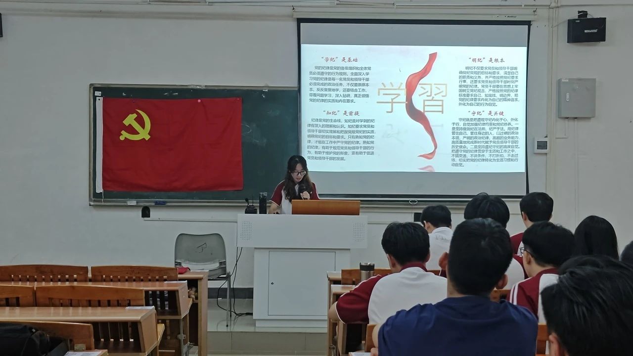 蓝光进老师提醒全体党员在今后的学习和工作中,将进一步增强政治意识、纪律意识和规矩意识,坚定信仰、恪守党纪,争做忠诚干净担当的合格党员。同时,也更加坚定了大家在学纪中筑牢信仰、在知纪中增强本领、在明纪中把握方向、在守纪中当好表率的使命担当。并将党纪学习教育结合在自身的实际行动上,遵守校规校纪,以忠诚干净担当的实际行动跑好历史接力棒