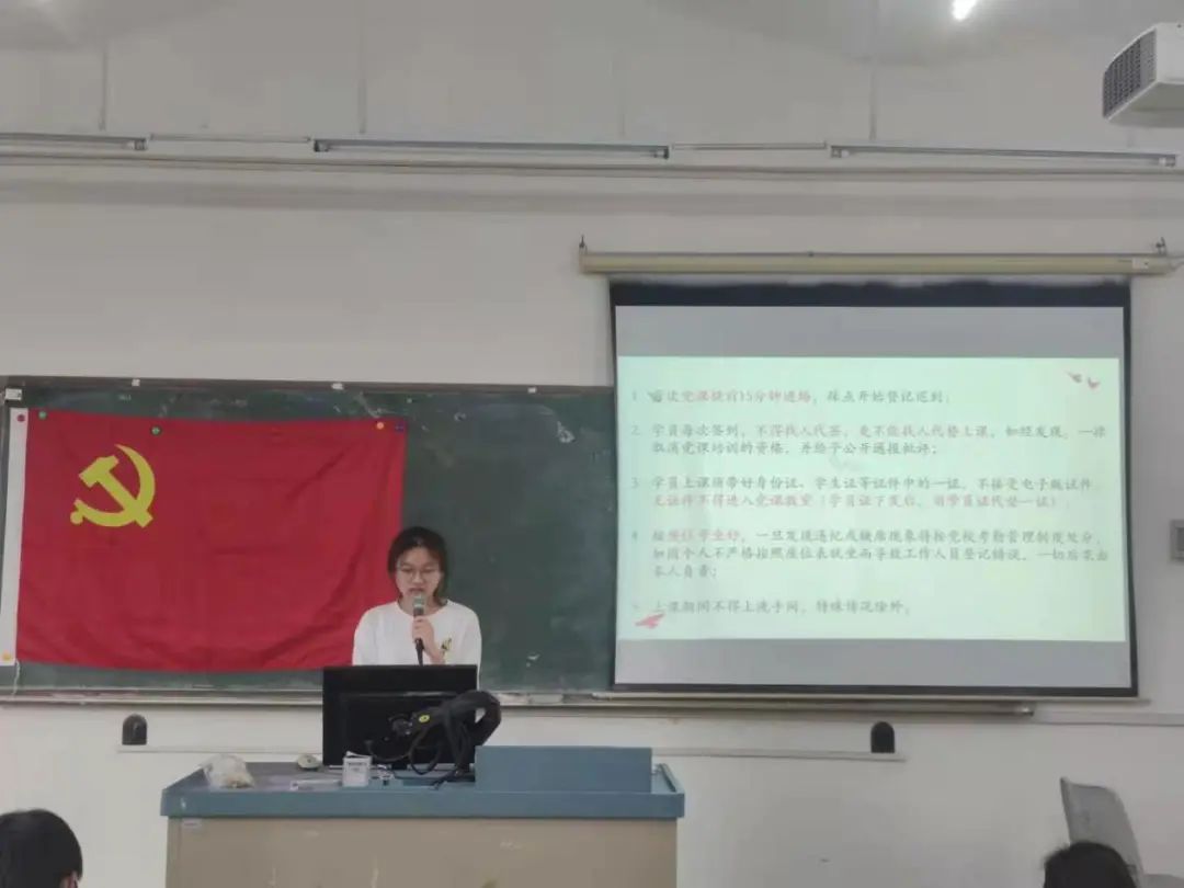 李嘉乐同志在动员大会上强调党课培训的纪律要求和注意事项1、每次党课提前15分钟进场,踩点开始登记迟到;学员每次签到,不得找人代签,更不能找人代替上课,一经发现,一律取消党课培训的资格,公开通报批评;