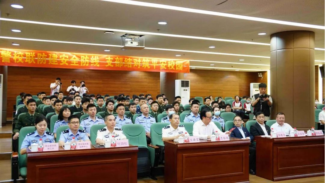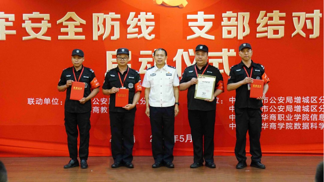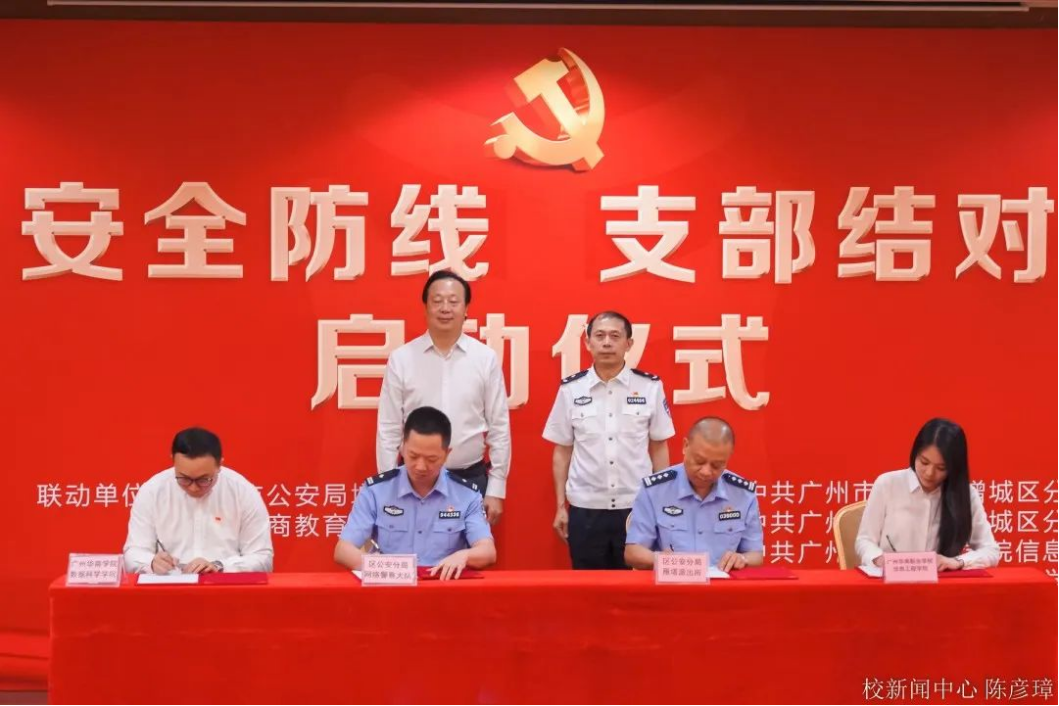 为深入贯彻党的二十大精神关于“统筹发展和安全,建设更高水平的平安中国”的要求,推动学习贯彻习近平新时代中国特色社会主义思想主题教育走深走实,5月19日上午,广东华商教育集团与广州市公安局增城区分局在华商公司中央图书馆报告厅隆重举行“警校联动筑牢安全防线,支部结对共建平安校园”启动仪式,警校合作单位共同签署共建协议书。