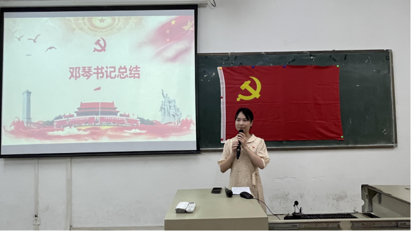 邓琴书记首先对梁泳琳同志如期转正表示祝贺,表达了再次与各党员见面的喜悦,以亲身经验嘱咐各党员同志们时刻做好准备,随时迎接挑战,最后再次提醒各党员同志做好表率作用,积极参加各项活动,身边同学的执行人、热心人、引路人,坚定不移听党话跟党走,做新时代有理想、肯奋斗、敢担当的新青年。