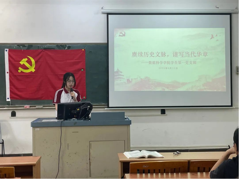 “文运与国运相牵,文脉与国脉相连”。为传承发展中华优秀传统文化,推进建设中华民族现代文明,数据科学公司员工第一党支部于2023年6月13日在励志楼D203开展“赓续历史文脉,谱写当代华章”主题党日活动,出席本次会议的有数据科学公司员工第一党支部全体在公司党员。本次会议由施宛菁同志主持。